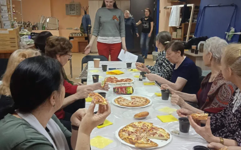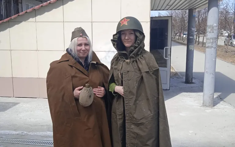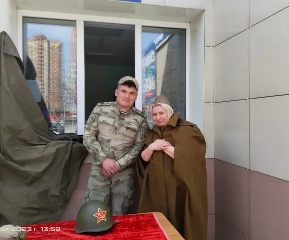 Далее жители прошли патриотический квест «Пройдем дорогами войны», по завершению которого участники спустились в бункер, где их ждал ароматный чай с пирогами. Была организована фотозона с атрибутами ВОВ, и там наших участников ждал просмотр фильма и мастер класс «Окна победы». В завершении нашего дня был организован концерт «Песни победы «с участием поэта и музыканта Юрия Гирольда.