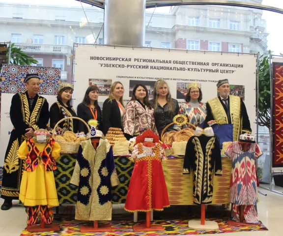 Выставка о деятельности национальных организаций, их вкладе в развитие Новосибирской области и города Новосибирска, о культурных традициях народов, проживающих на территории города и области прошла в фойе второго этажа. Городской межнациональный центр развернул свою книжно- предметную выставку, продемонстрировав литературу на разных языках и стилизованных кукол, представляющих определенный народ.