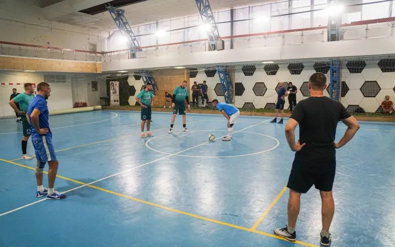 В этом году мы провели свой ежегодный футбольный турнир среди 10 дворовых команд города Новосибирска, большинство команд с Дзержинского района. Сегодня футбол был не на дворовом поле, как в предыдущие года, а на стадионе, в специализированном помещение, где все соблюдено для футболистов - душ, раздевалка, паркет.