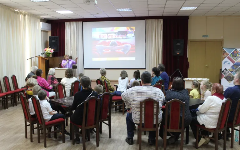 В нашем кинотеатре- все устроились поудобнее и надо было не только смотреть фрагменты кинофильмов, но и отвечать на вопросы. Старшее поколение выступало лидером, а где-то и младшие не падали духом! И даже когда один фрагмент из «Карнавальной ночи» режиссёра Эльдара Рязанова завершился молодые люди попросили продолжение фрагмента, где актёр Сергей Филиппов рассказал про жизнь на Марсе.