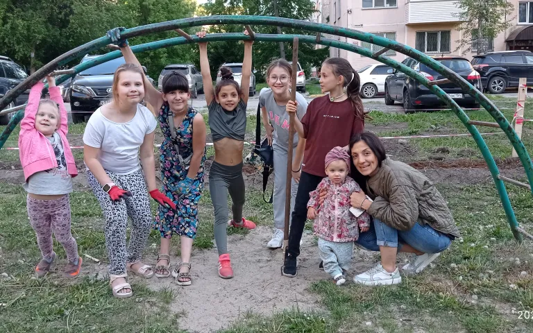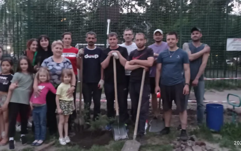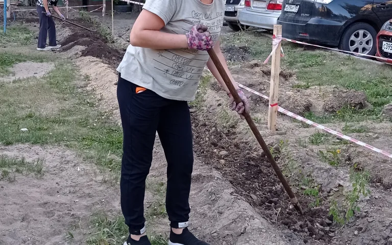 После обучения на курсах «Ландшафтное проектирование общественных и придомовых территорий ТОС» при Дачной Академии возникла идея, воплотившаяся в проект «Благоустройство детской площадки «Островок радости» от ТОС «Березовая роща». Детскую площадку на ул. Гоголя, 184, 184/1, 186 с двух сторон окружают автомобильные стоянки, поэтому для безопасности детей мы в этом году по периметру посадили живую изгородь. При поддержке питомника ООО «Флоренс», депутата городского Совета депутатов И. П. Беспечной и администрации Дзержинского района в 2022 году был выполнен большой объем земляных работ (завезено 2 машины земли, высажено 110 саженцев и посажены многолетники).