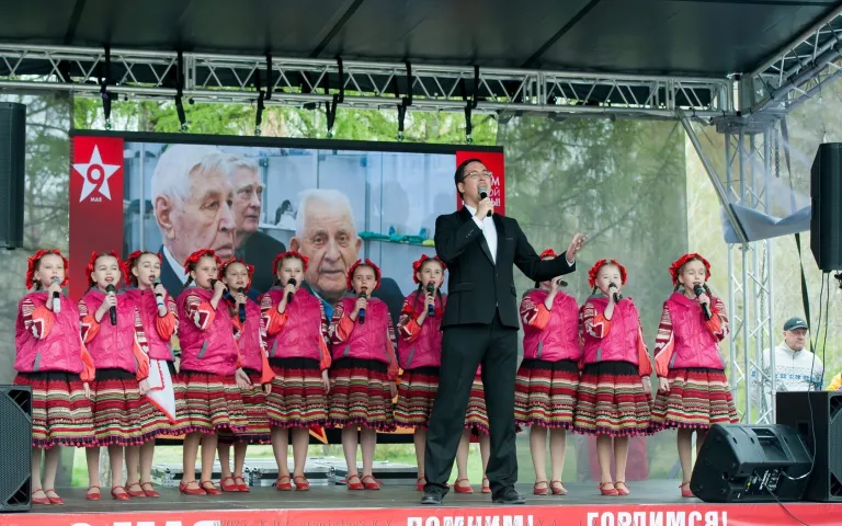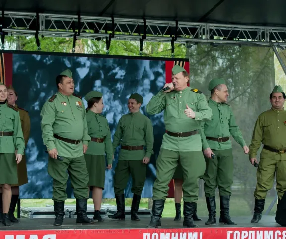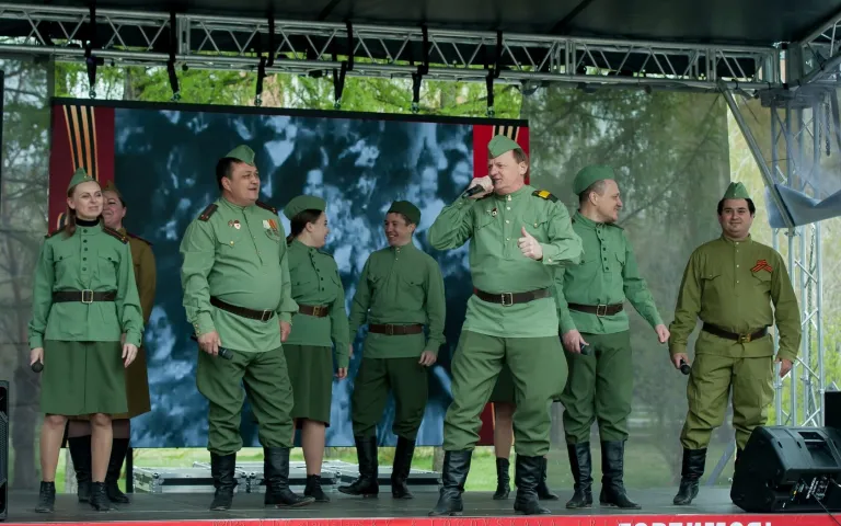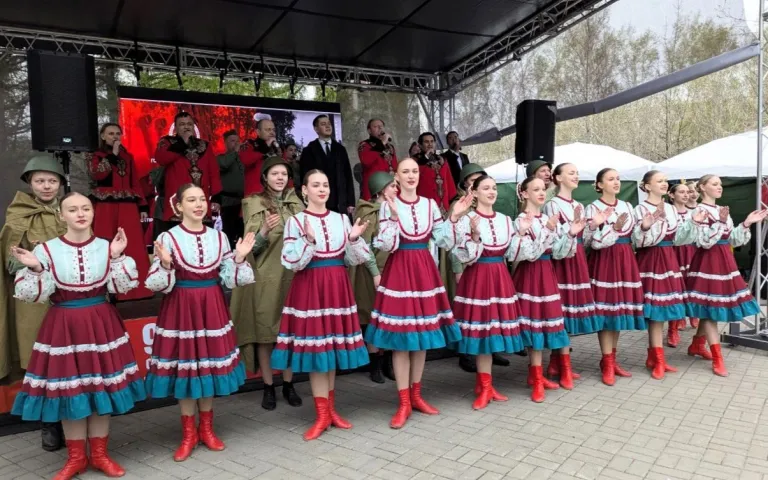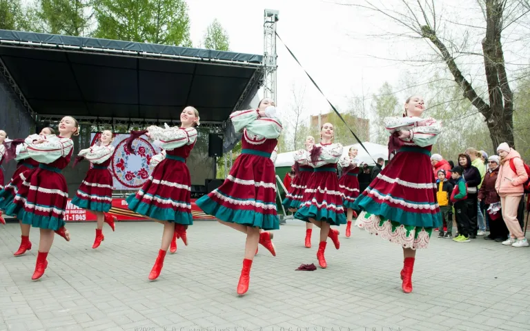Концертная программа от КДЦ им. К.С. Станиславского подарила гостям невероятное музыкальное путешествие сквозь десятилетия, пленяя душу тёплыми мелодиями военных песен и зажигательных русских народных танцев.