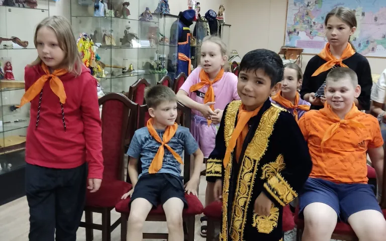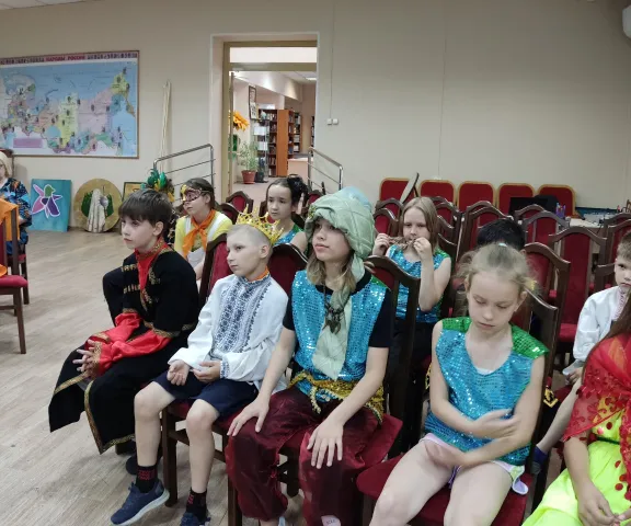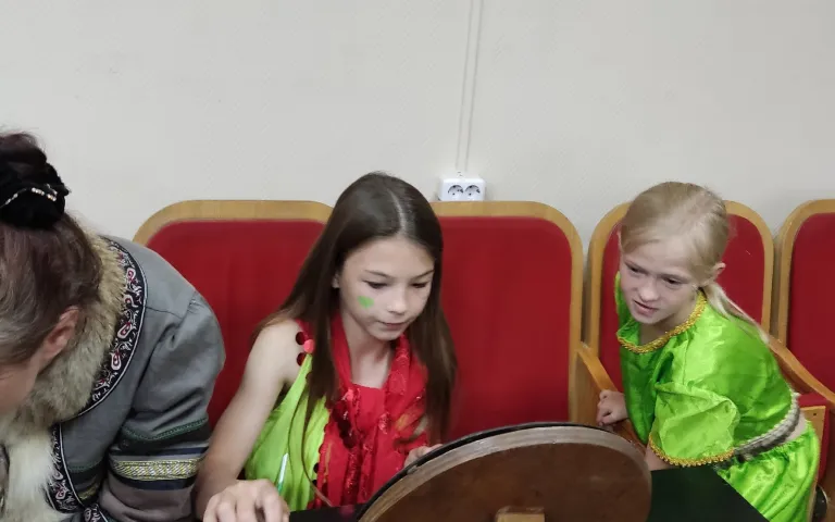 В комнате для репетиций на столе стояли – предметы, необходимые актёрам по ходу действия спектакля. Это реквизит, который в течение часа переходил из рук в руки на репетициях. А вот в пошивочный цех, где ставили чум и сшивали «шкуры»- можно было только посмотреть, так как времени на пошив костюмов совсем не осталось. Нисколько не расстроились «актёры», так как впереди ещё много у них творчества и позитива!