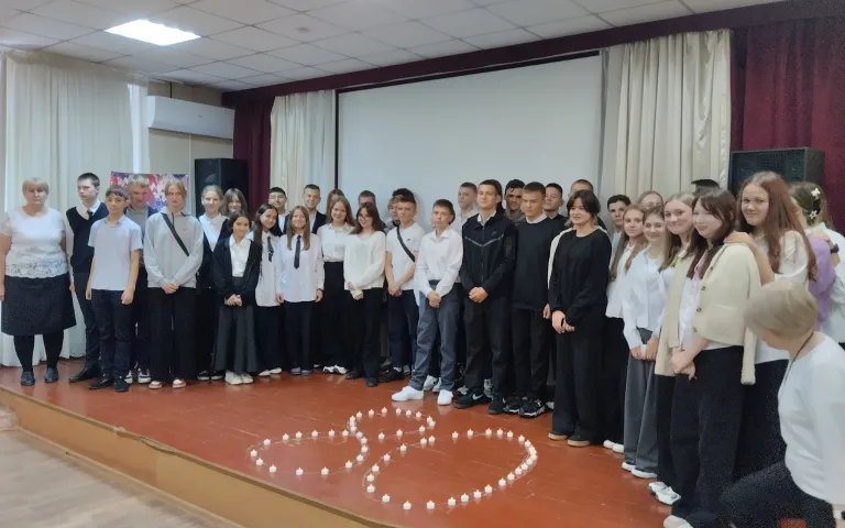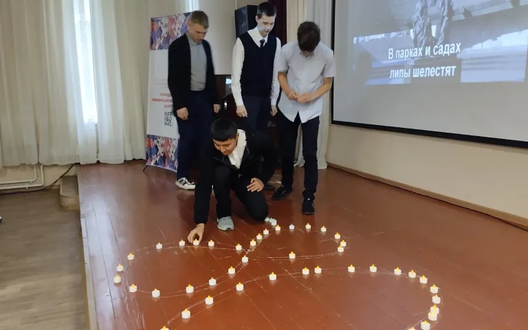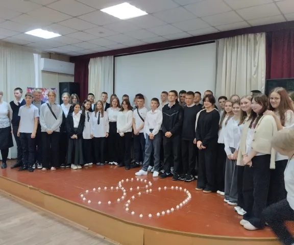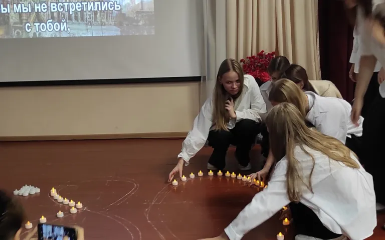 Участники торжественного мероприятия - восьмиклассники и педагоги МБОУ СОШ № 50 и МБОУ СОШ № 187 - почтили минутой молчания память погибших защитников и жителей Ленинграда и символично зажгли свечи в честь 80-летия освобождения города на Неве.