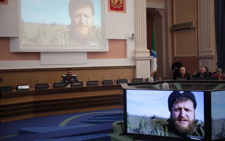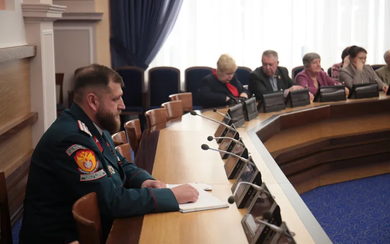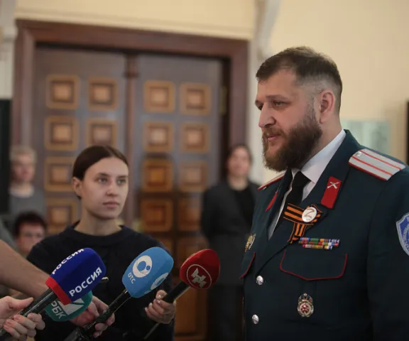 В мэрии общественники встретились с участником специальной военной операции, атаманом новосибирского казачьего общества Алексеем Харитоновым. Прошлым летом мужчина ушёл на фронт добровольцем.