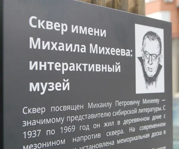 Михаил Петрович Михеев (1911 — 1993) — одна из ключевых фигур сибирской литературы. Его книги издавались не только в Новосибирске, но и за рубежом (Польша, Чехословакия, Венгрия, Югославия, Германия). Произведения Михеева, написанные в различных жанрах, включая фантастику, детективы, детские рассказы и стихи, стали важной частью литературной жизни Новосибирска. С 1937 по 1969 год писатель жил в деревянном доме на ул. М. Горького напротив сквера. По результатам голосования жителей Новосибирска на портале «Госуслуги» в 2022 году скверу присвоили имя писателя.