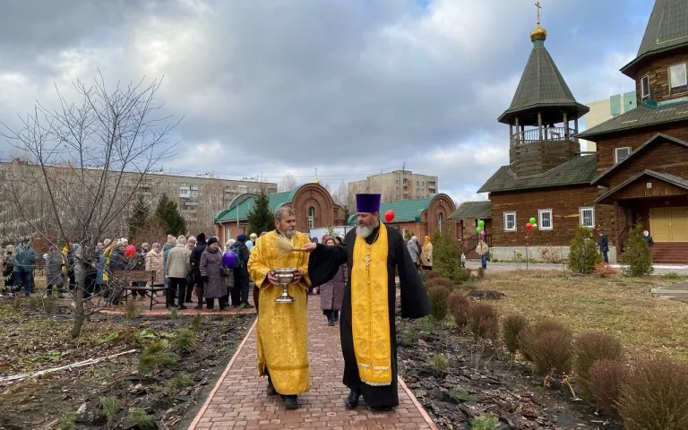 Несмотря на прохладную погоду и будний день, радость значимого события пришло разделить немалое количество людей. Новый сквер был нарядно украшен яркими красочными шарами и ленточками, а во время торжественного открытия на пасмурном осеннем небосводе весело заиграло солнце, отразившееся радостью и улыбками на лицах прихожан и гостей храма .