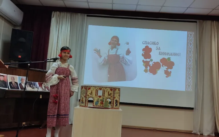 Таисия Малышева из МБОУ «СОШ № 67» на примере сказки «Кот, петух и лиса» показала создание миниатюрного кукольного театра, который является не только развлечением для зрителя, но и сохраняет культурные традиции. Семья и весь класс Таисии были охвачены работой над персонажами и созданием сказочной атмосферы. Чтобы показывать спектакль дома, в детском саду или школе, на дедушкином станке даже был сооружён миниатюрный театр. В итоге получилась прекрасная возможность знакомства с русским фольклором через сказочницу Таисию в русском костюме!