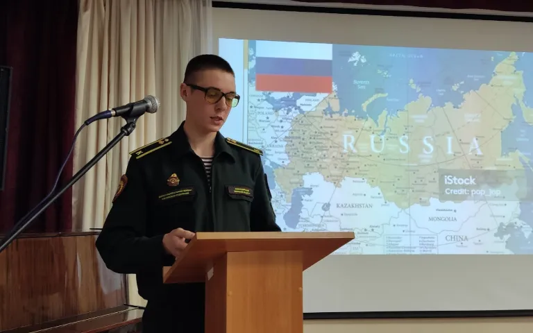 Курсант 2 курса НВИ Никита Черняков настолько увлекательно и воодушевленно рассказывал о родном Владивостоке, что большая часть публики мечтает теперь побывать в этом городе.