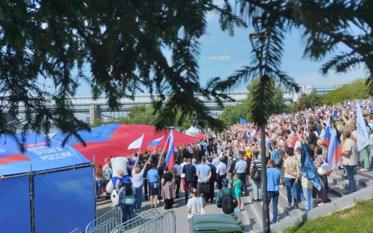 Мы посетили грандиозное мероприятие на Михайловской набережной — «Великий флаг у берегов Сибири». Это был потрясающий праздник, наполненный патриотизмом, музыкой и единством!