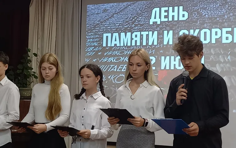 Читая сценарий, ведущие задавали такой вопрос: «Как это в одночасье разрушились надежды миллионов семей, были поломаны судьбы целых поколений»? И сами себе отвечали: «Так ведь, танки, самолёты и сколько уже бед могут нанести за несколько часов, а дом становится похожим на обломки..» Память о том грозном дне, как и не утихающая скорбь, навсегда останется в наших сердцах. В эти первые дни погибли те, кто даже фотокарточку не смогли сделать своим родственникам «На память». Они просто не успели… Например, в Брестской крепости, которая стала символом борьбы, героизма и мужества, в числе застигнутых врасплох советских воинов войну встретили представители более 30 национальностей. До сих пор устанавливают имена погибших.
