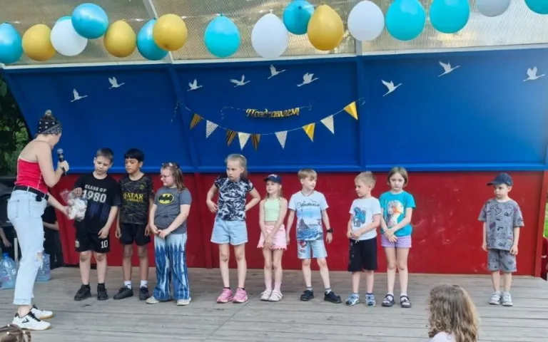 Ребята получили призы за участие в спортивных мероприятиях, за музыкальные и творческие конкурсы и, конечно, сладости и воздушные шарики!