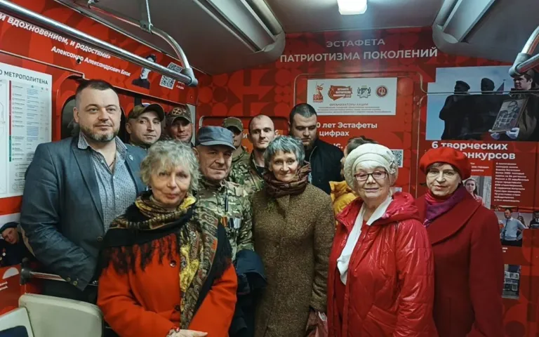А сегодня, на презентации экспозиции, посвященной 10-летию «Эстафеты патриотизма поколений», в вагоне метро мы