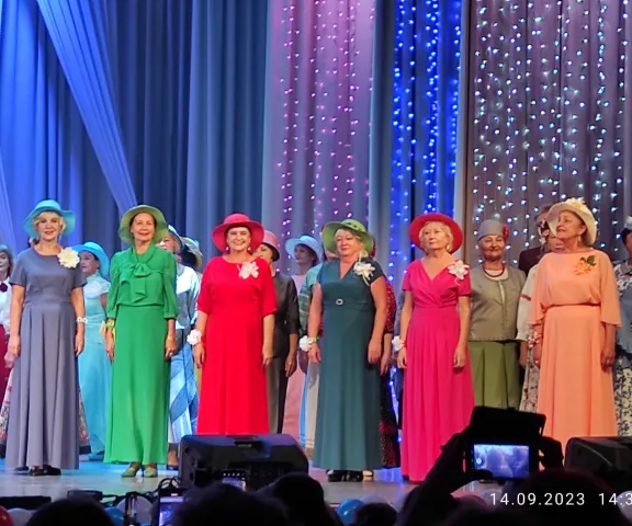 Когда в финале концертной программы сцену заполнили участники творческих коллективов, постановщики дефиле, преподаватели студии стиля «Элегантный возраст» в ярких длинных платьях, шикарных шляпах, зрительный зал просто задохнулся от восторга и взорвался аплодисментами. Так все было красочно, эффектно, празднично. А мне, глядя на этих красивых людей, вдруг вспомнилось – «Ах, какое блаженство знать, что я совершенство!». Помните, героиня Натальи Андрейченко, женщина с правильной самооценкой, из фильма про Мэри-Поппинс именно так себя позиционировала. И все видели ее только такой. Нет, у нас на зонтике с неба, никто не спускался, но мы и без этого фурор произвели. Собственно, открытие сезона, как говорят выпускники студии, всегда проходит, не побоюсь этого слова, феерично.