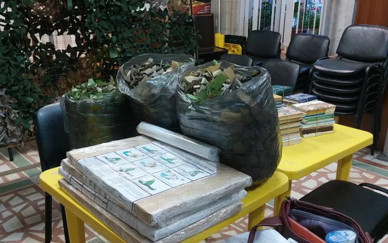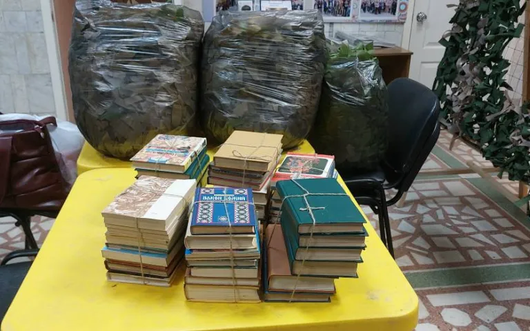 Помимо этого, жители района приносят продукты питания, книги, плакаты и другие нужные вещи для отправки на Донбасс.