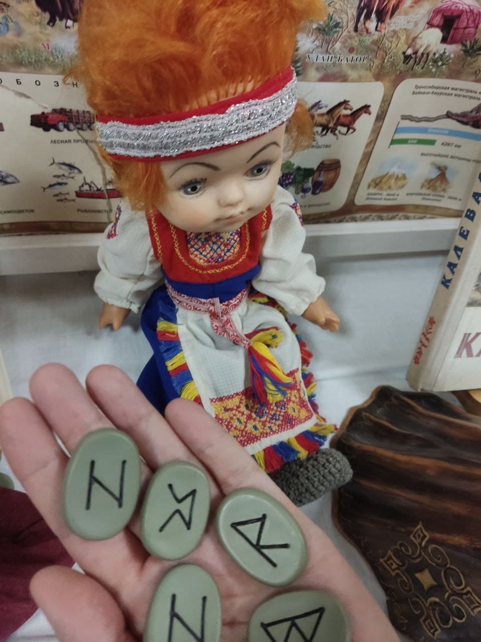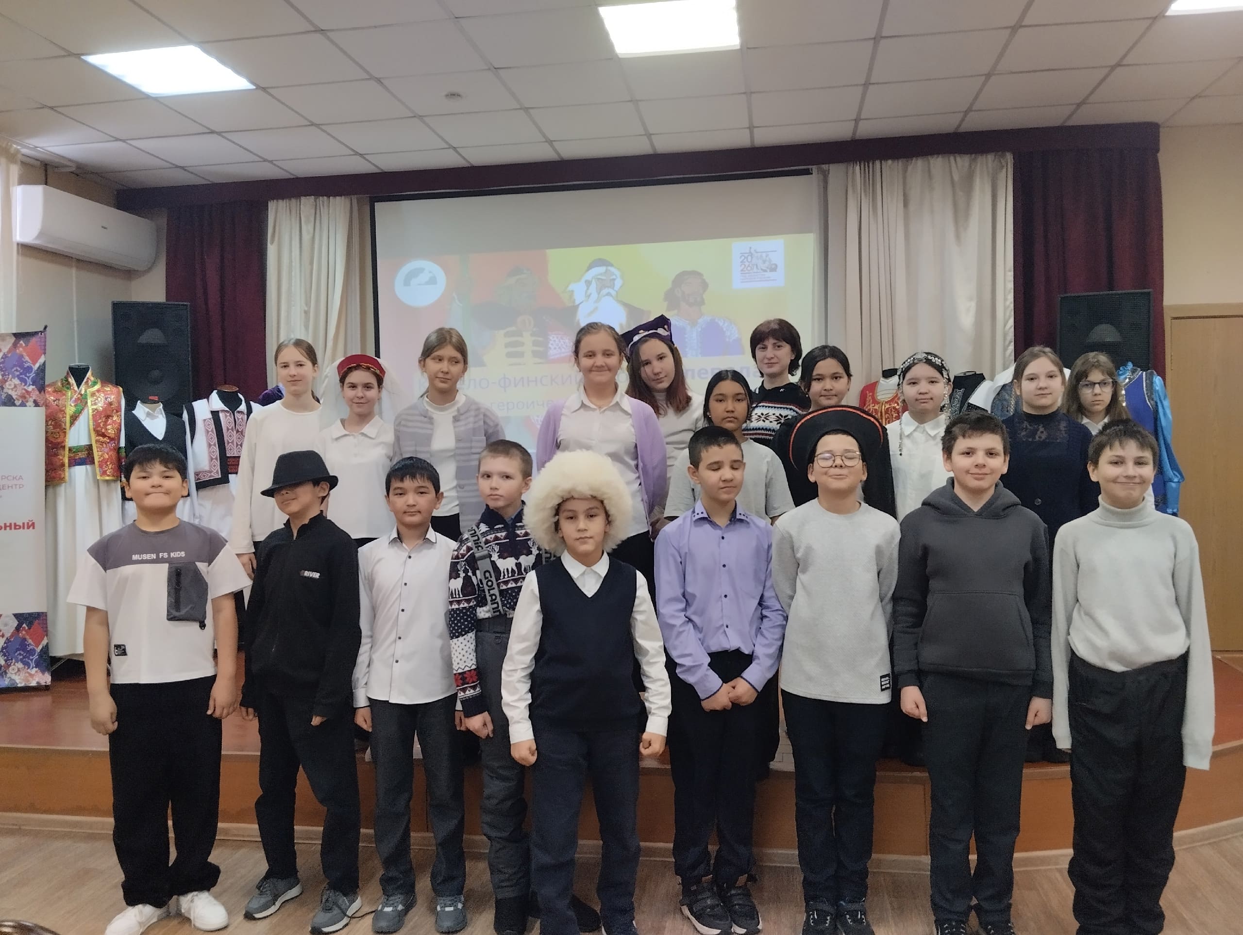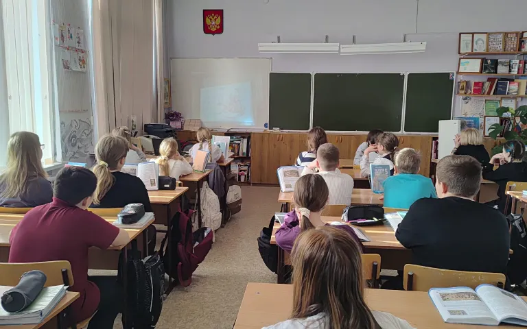 На книжно-предметной выставке ученики не только узнали о героях сказаний, но и познакомились с народными атрибутами и традиционными костюмами регионов России. В завершение встречи местные ребята закрепили полученные знания, собирая большой пазл «Россия». Они безошибочно указали на карте регионы, где родились сказания о героях, с которыми только что познакомились.