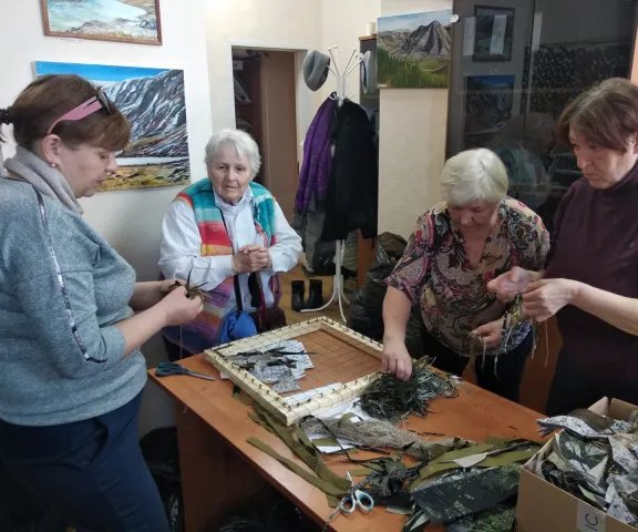 Далее Оксана и Юлия начали искать помещения, обратились к бизнесменам, общественникам, и у них появился ещё один пункт. Со временем открылись еще два пункта, к плетению маскировочных сетей также присоединились женщины ТОСа поселка Геологов (Советский район) и женщины поселка Толмачево.