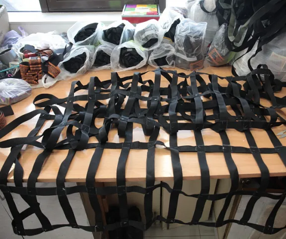 Оксана Гринкевич, хозяйка ателье и куратор волонтёрского движения «Золотые руки ангела», вместе со своей командой изготавливает носилки для раненых из парашютных строп. Мастерская по пошиву одежды практически полностью переориентировалась на нужды спецоперации.