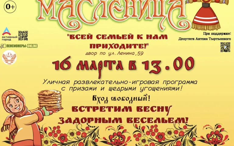 16 марта в 13.00, проводы зимы и встреча весны состоится во дворе дома по ул.Ленина,59 (Железнодорожный район). Вход свободный.
