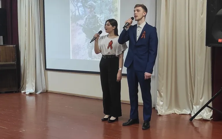 Стихи, посвященные событиям Великой Отечественной войны и рассказ о подвиге нашего современника, недавнего студента этого же колледжа Александра Каракова, погибшего в ходе Специальной военной операции на Украине, соединила знаменитая песня «Журавли» на стихи Расула Гамзатова, сыгранная в начале выступления на саксофоне и исполненная ребятами в финале.