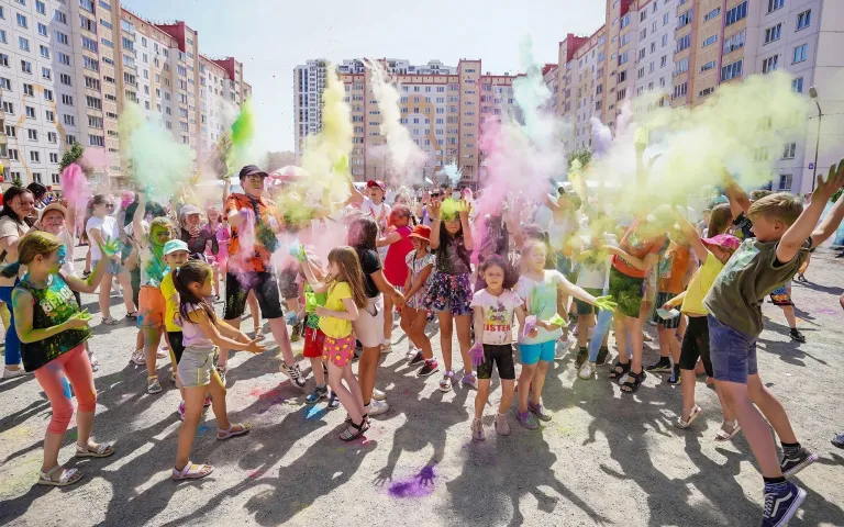 2 июня мы принимали участие в совместно организованном мероприятии «Краски ФЭСТ» где дети могли поучаствовать в различных конкурсах, прокатится на аттракционах, танцевать до упаду и естественно быть все измазанными красками и пеной.
