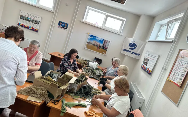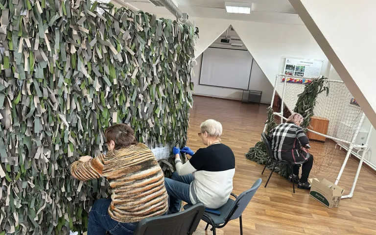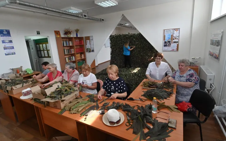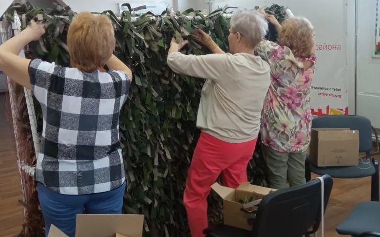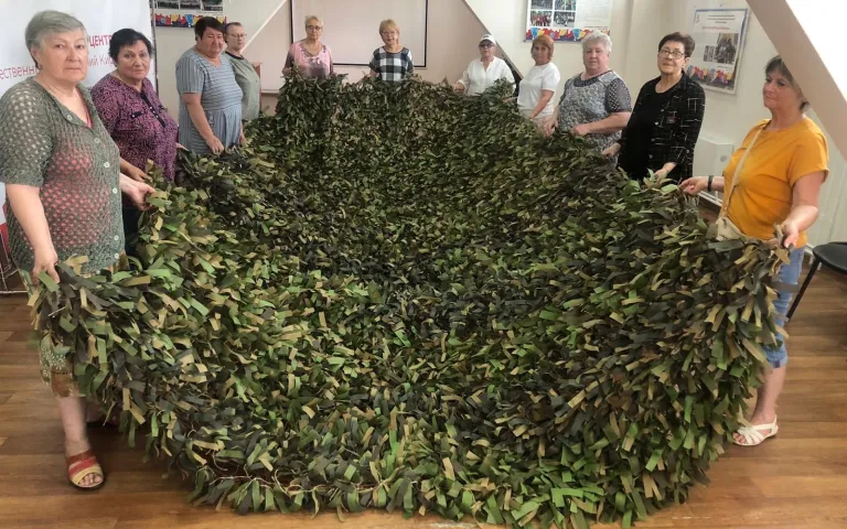 В Ресурсном центре по ул.Петухова,95/1 по инициативе ТОС «Матрёшкин двор» с марта кипит работа по изготовлению заготовок блиндажных свечей, а теперь ещё и по изготовлению маскировочных сетей. Как только у общественников появляется свободное время, они приходят сюда, чтобы сделать как можно скорее очередную сетку.