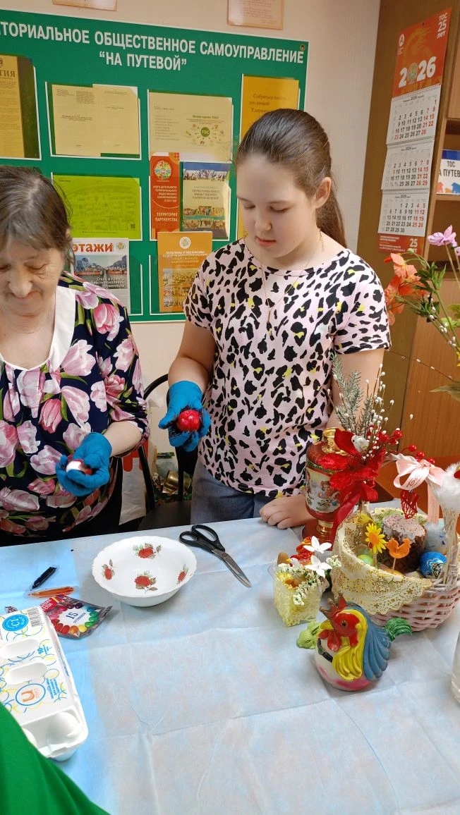 11 апреля ТОС «На Путевой» провел с жителями нашего микрорайона творческое мероприятие мастер-класс «Пасхальное яичко» Участники мастер‑класса смогли:познакомиться с историей пасхальной традиции украшения яиц; освоить несколько способов росписи яиц, проявив фантазию и творческие способности; создать уникальные пасхальные сувениры, которые потом можно подарить близким.Были рассмотрены разные методы покраски яиц: классическая покраска в луковой шелухе — она придала яйцам насыщенный золотисто‑коричневый оттенок. Это простой и проверенный способ, который используют многие поколения, использование пищевых красителей — участники получили яркие и насыщенные цвета. Многие комбинировали несколько оттенков для создания интересных узоров, декорирование с помощью наклеек и трафаретов — этот способ помог создать аккуратные рисунки и узоры. Он особенно понравился малышам, которые только начинают знакомиться с творчеством. Все гости мастер‑класса с удовольствием окунулись в атмосферу праздника, проявили творчество и создали яркие пасхальные поделки.
