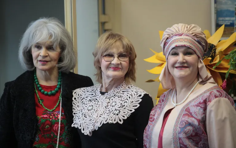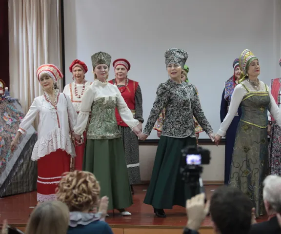 «Мы не делаем реконструкцию народного костюма. Мы создаём современный костюм с элементами народного. Тут в основном пенсионеры — бюджет, сами понимаете, ограниченный. Мы стали создавать костюмы на основе имеющегося гардероба. Дамы приносят свою одежду, и мы смотрим, как можно добавить элементы русского костюма», — рассказала руководитель творческого объединения «Кружева» Надежда Митюкляева.