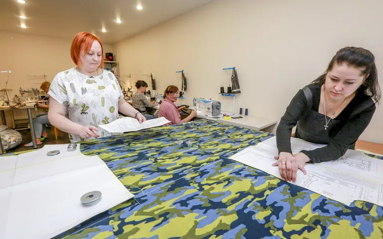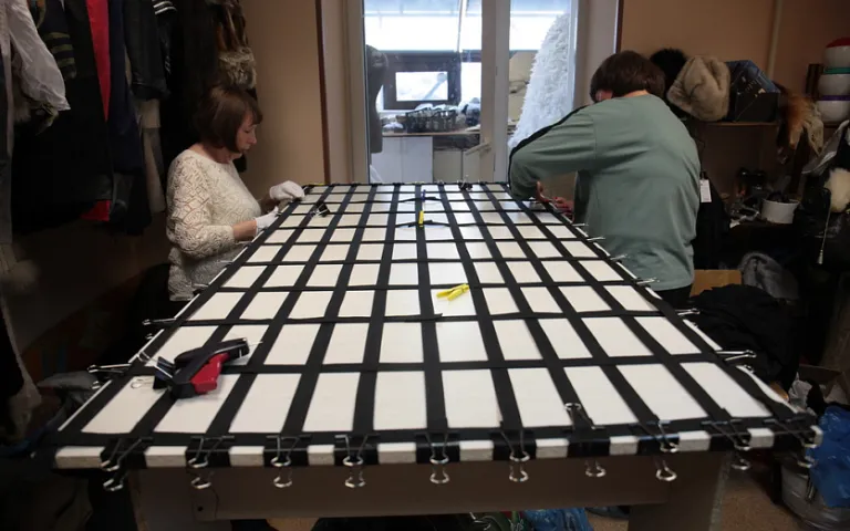 Волонтерская команда «Золотые руки ангела», все вместе изготавливают носилки для раненых из парашютных строп. Мастерская по пошиву одежды практически полностью переориентировалась на нужды спецоперации. В каждое изделие вложена частица души, всё ради скорейшей победы и возвращения бойцов домой живыми и невредимыми. Оксана Гринкевич,хозяйка ателье и куратор «золотых рук», отмечает, что такие носилки дают больше шансов спасти солдата в условиях боя.
