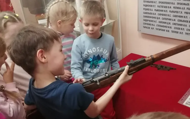 Центральной частью программы стало посещение музея, где дети и родители смогли ознакомиться с экспозицией, отражающей историю нашего региона. Среди экспонатов особого внимания заслужили картины талантливого художника Чабанова, выполненные в реалистичном стиле и передающие атмосферу героической эпохи. Гостям также показали реконструированный срез настоящей солдатской землянки времен Великой Отечественной войны, воссоздав уникальную атмосферу тех суровых лет.