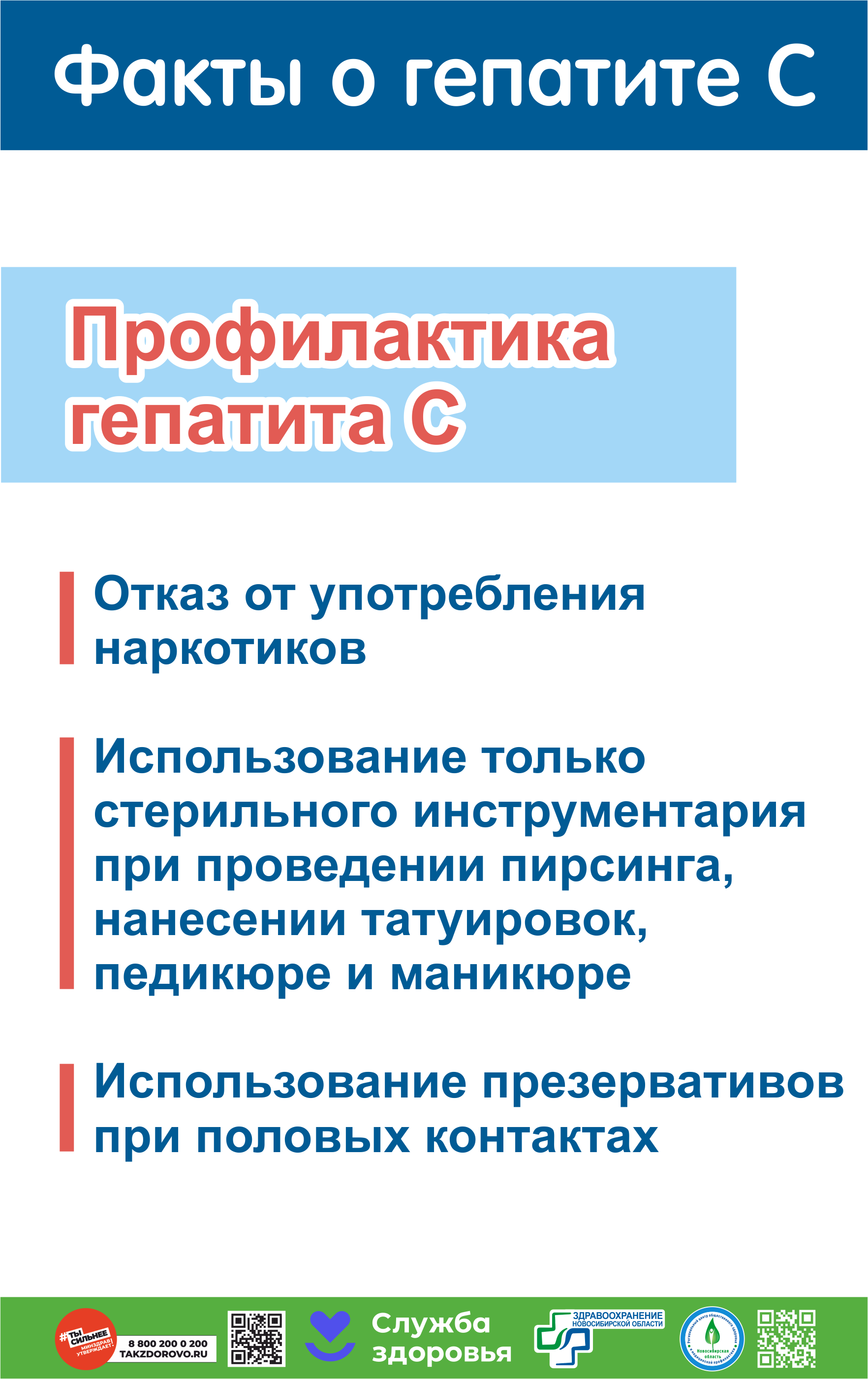 Помните, что забота о здоровье — это не только профилактика, но и ранняя диагностика. Будьте внимательны к себе и своим близким, и не забывайте, что информированность — это ваш главный союзник в борьбе с гепатитом С.Читайте полезные статьи на сайте https://rcmp-nso.ru/profila/info/hepatitis_week.php
