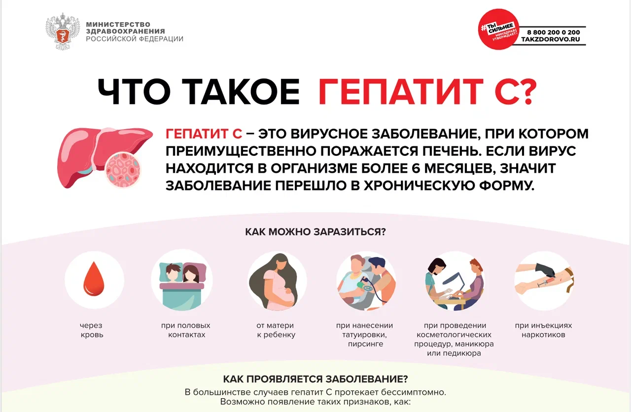 С 9 по 15 марта 2026 года Министерство здравоохранения РФ запускает Неделю по борьбе с заражением и распространением гепатита С. Понимание и профилактика — это ваши первые шаги к здоровью и благополучию. Гепатит С — это заболевание, которое можно победить, если вовремя обратить на него внимание.