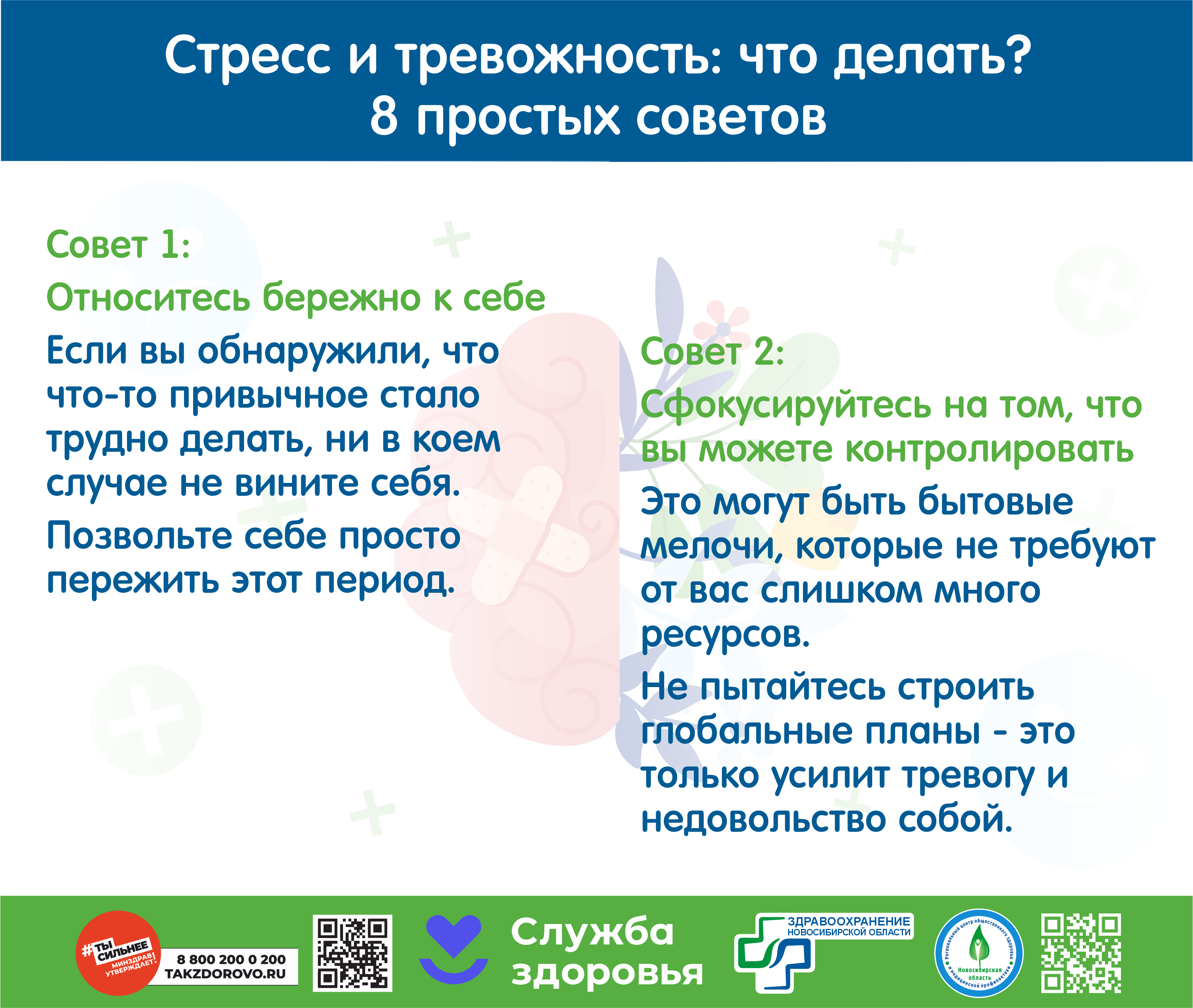 Не откладывайте заботу о себе на потом. Начните с малого: добавьте в рацион больше овощей и фруктов, займитесь утренней зарядкой или прогулкой на свежем воздухе. Ваше здоровье – ваш главный ресурс, от которого зависит качество жизни. Полезные статьи о повышение качества здорового образа жизни читайте на сайте rcmp-nso.ru/profila/in…