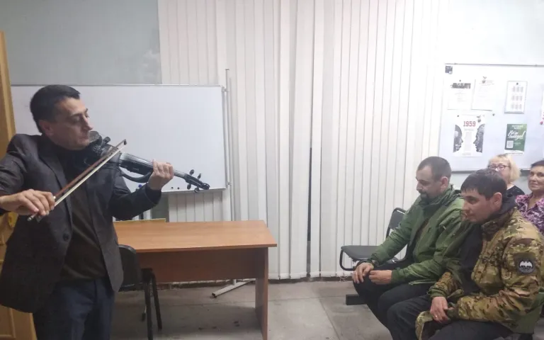 Новосибирский скрипач-виртуоз Давид Агинян поздравил добровольцев с годовщиной. Его отец Гамлет Арташесович активный участник плетения маскировочных сетей в пункте плетения, расположенном в Ресурсном центре общественных объединений Советского района (ул. Новоморская, 12, МКУ «Активный город»). Он подарил добровольцам музыкальный подарок, сыграв несколько мелодий своего сочинения. Концерт состоялся благодаря поддержке звукорежиссера Михаила Чубченко.