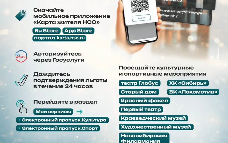 Новые сервисы для участников СВО региона «Электронный пропуск.Культура» и «Электронный пропуск.Спорт» внедрены в «Карте жителя Новосибирской области». При посещении учреждений участник СВО может не подтверждать статус бумажными документами, достаточно QR-кода в смартфоне.