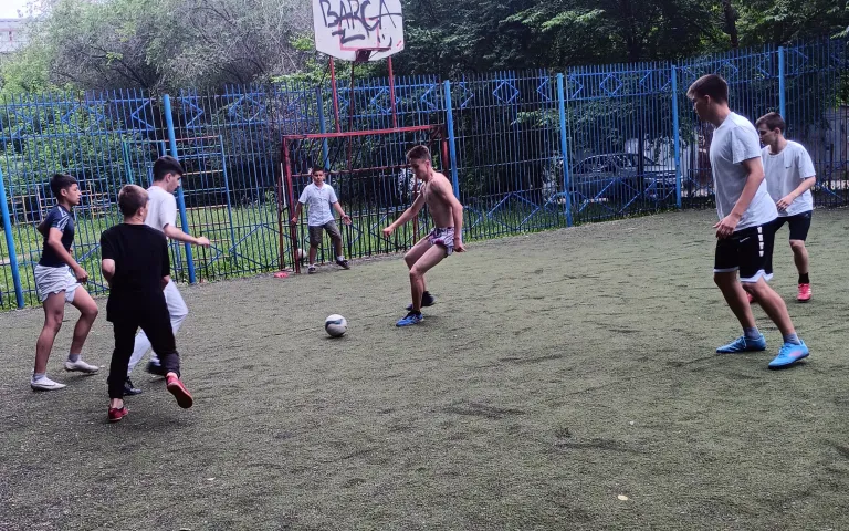 Открытие спуска отметили дворовым турниром по футболу между командами ТОС5 и ТОС7. Результат матча 2:2. Все участники остались довольны.