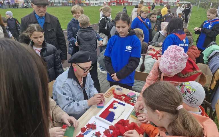 Кроме того прошли увлекательные мастер-классы: валяние из шерсти «Красная звезда» , письмо солдату, «Голубь мира», оригами «Журавлик из бумаги» , брошь из гофрированной бумаги «Цветок Победы» и др., где участники могли попробовать себя в различных творческих занятиях.