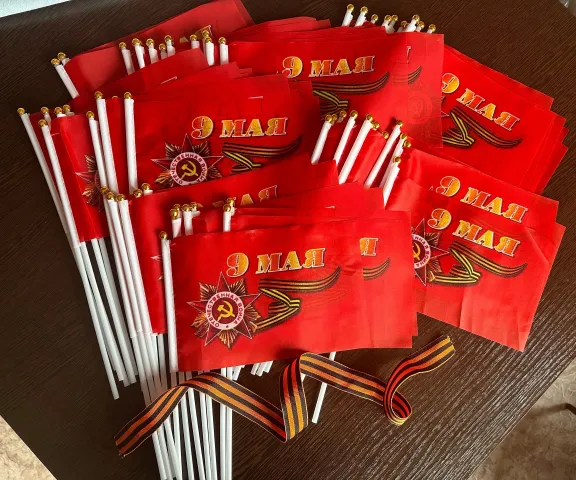 - Раздавали красочные флажки с символикой Дня Победы;