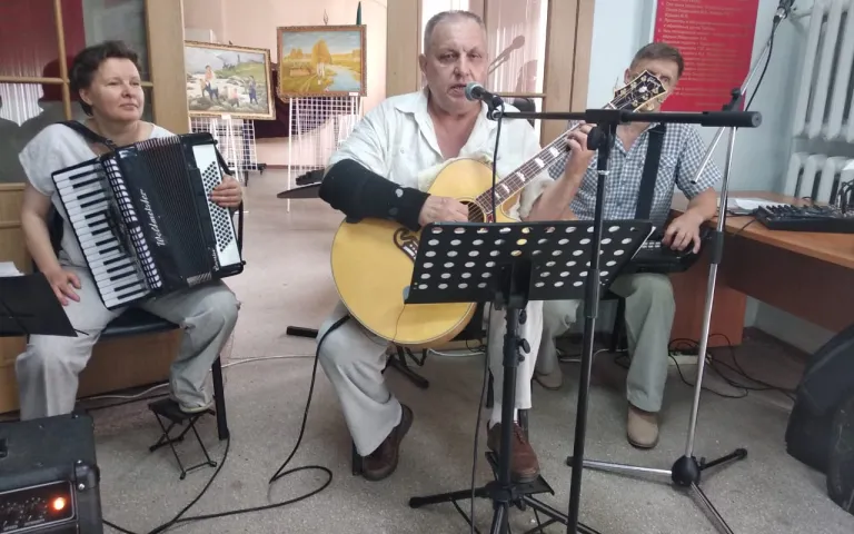 Полтора часа музыканты и певцы Михаил Чубченко, Ольга Петухова, Вагиз Фахрутдинов исполнили любимые песни о Родине.