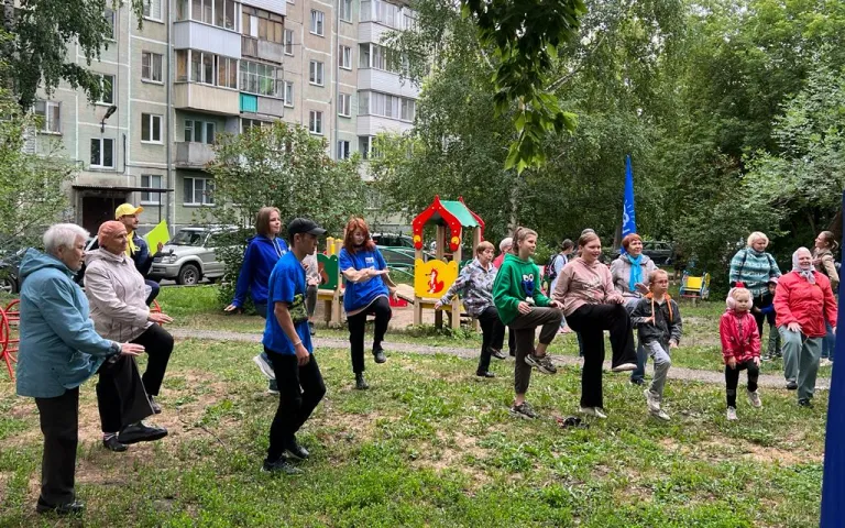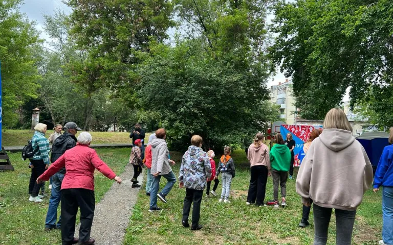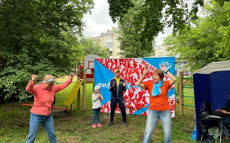 Несмотря на «нелетную» погоду, самые активные и спортивные жители ТОСов «Тулинка» и «Новогодний» собрались, чтобы вместе разучить комплекс утренней гимнастики на свежем воздухе. Под бодрую музыку все с задором разучивали движения и с воодушевлением повторяли за тренером упражнения. А вела зарядку кандидат в мастера спорта по пауэрлифтингу Светлана Полетаева. Даже начавшийся мелкий дождик не помеха. Рядом и взрослые, и дети. соревнования на выносливость, гибкость, стойкость и быстроту объединили все возраста. Бабушки участвовали в конкурсах наравне с внуками. И в викторине каждый мог блеснуть эрудицией, да еще и получить сувенир на память. Хорошо позанимались, пообщались, сформировали команду спортивных единомышленников