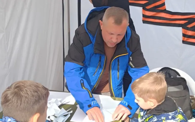 ТОС «На Путевой» принял участие в выставке военной спецтехники у ГПНТБ и провёл мастер-класс по изготовлению бумажных самолётов