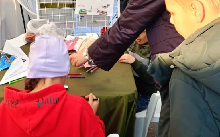 и дал возможность нарисовать рисунки и написать письмо солдату. Все работы детей будут отправлены с посылкой в зону СВО.