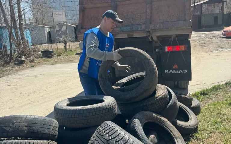 Много покрышек ещё на парковках, клумбах - есть куда стремиться, есть что очищать.