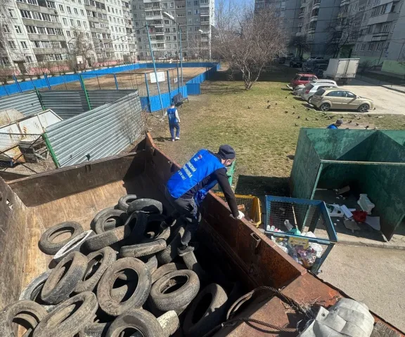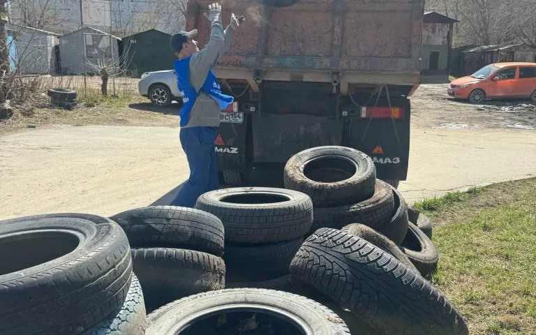 2 камаза старых покрышек вывезли сегодня с Плехановского жилмассива.