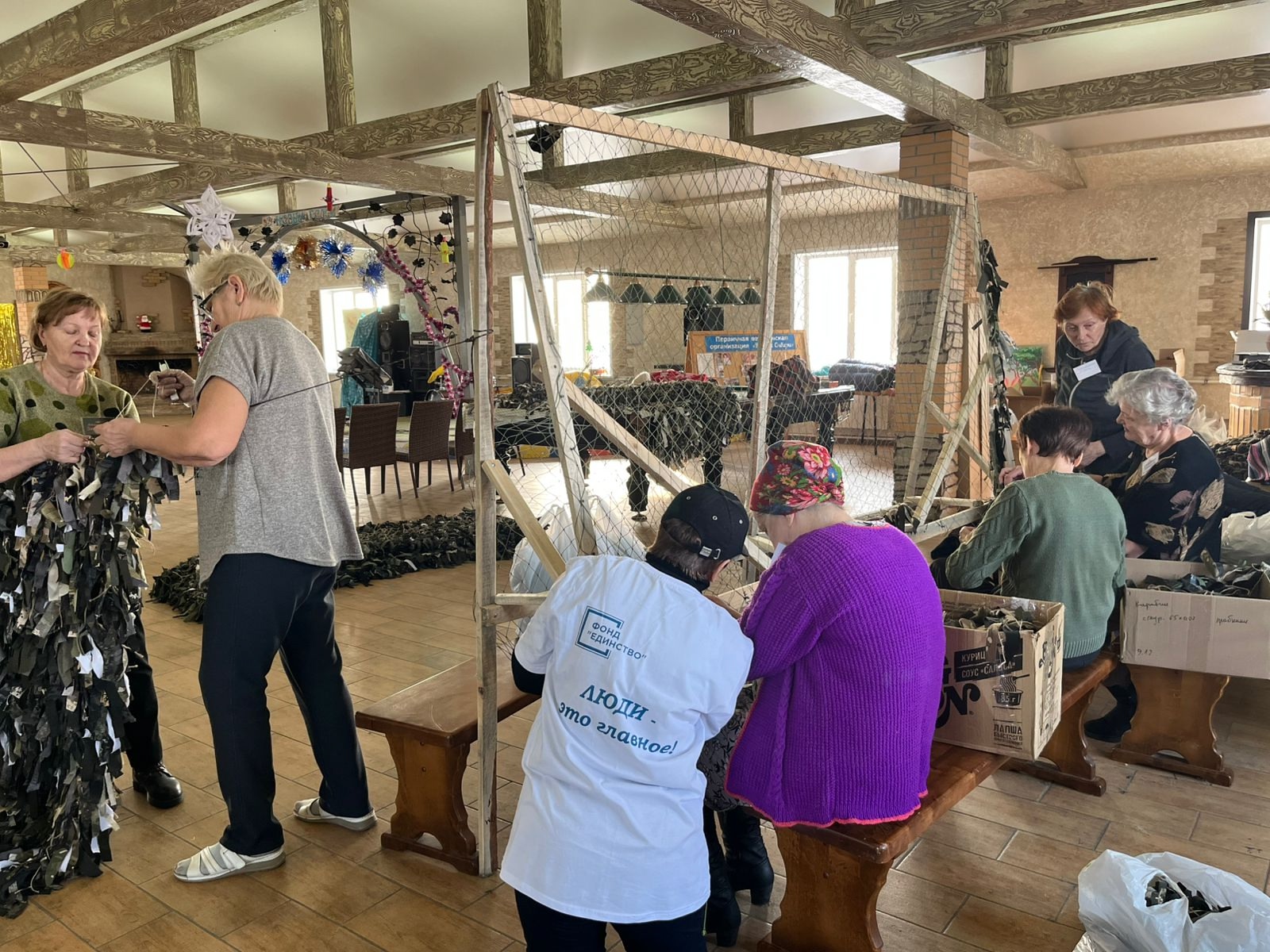 С 2022 года одним из основных и особо значимых направлений Фонда поддержки социальных инициатив «Единство» стало оказание помощи военнослужащим СВО, их семьям, вынужденным переселенцам. Во взаимодействии с неравнодушными жителями и представителями некоммерческого сектора и предприятий собирается и отправляется гуманитарная помощь на регулярной основе, волонтерские центры при содействии территориально-общественных самоуправлений изготавливают маскировочные сети и окопные свечи. Накопленный опыт работы команды Фонда - уникальный, помощь оказывалась с первых дней СВО. В содействии с предприятиями, общественными организациями, ТОСами созданы волонтерские центры по сбору гуманитарной помощи и изготовлению маскировочных сетей, окопных свеч, сухого душа, паутинок и т.д. Раз в полтора месяца формируется и уходит с грузом фура. Помощь оказывается на регулярной основе 41 общевойсковой Краснознаменной армии, 24 отдельной гвардейской бригаде специального назначения, 19 отдельному отряду СПН «Ермак», отряду СПН «Вега», пострадавшим жителям и мн. др.