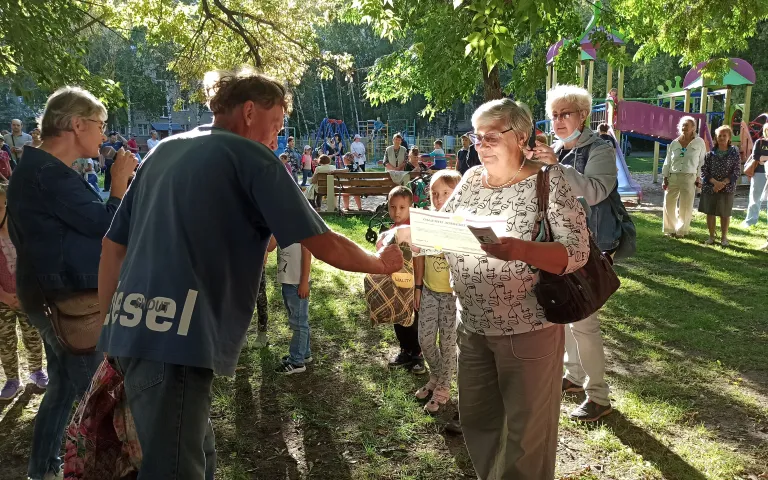 Активистам и участникам конкурса «Мой цветущий двор» были вручены благодарственные письма и памятные призы от депутатов Совета депутатов города Новосибирска Червова Д.В. и Савельева А.Г., а также от Совета ТОС «Выставочный».