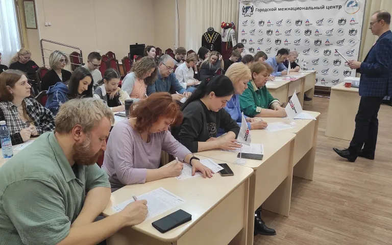 Одна из площадок расположилась в Городском межнациональном центре. Для написания диктанта здесь зарегистрировались 45 человек. Были те, кто уже несколько лет приходит проверить свою грамотность, и те, кто решил это сделать впервые. Любители русского языка собрались разного возраста: выпускники школы № 20, родители и ребята, которые учатся сейчас, педагоги.