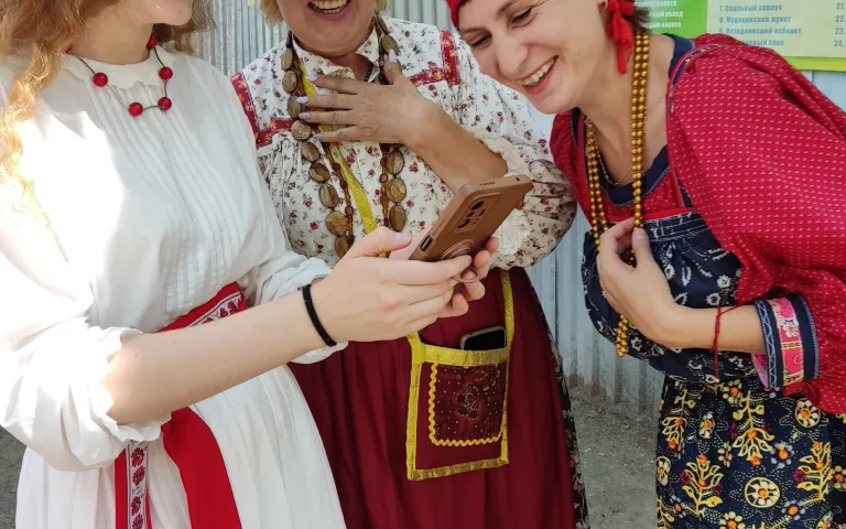 В рамках проекта «Этно-кампус» проводились также беседы о русском костюме крестьян-переселенцев в Сибирь. Сложно? Конечно, непросто, ведь это разговоры о модных фасонах прошлых веков, кто заинтересовался всерьёз! И это было начало.