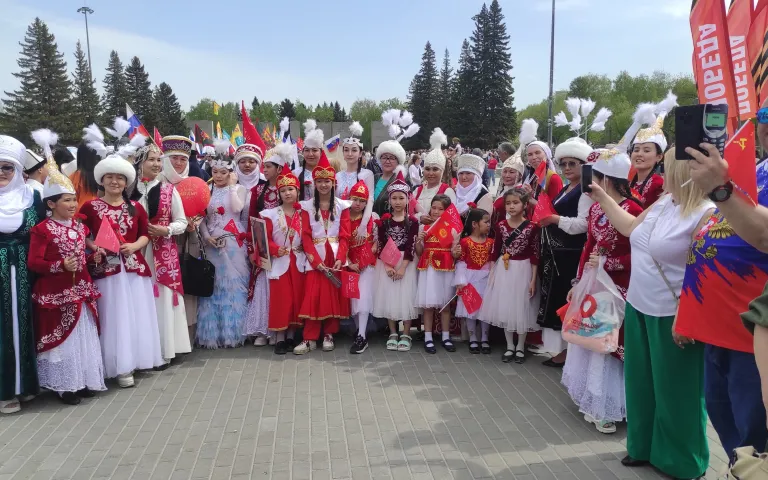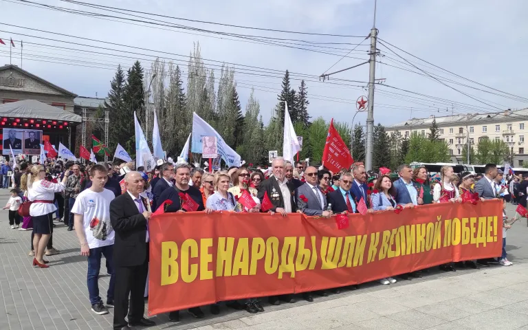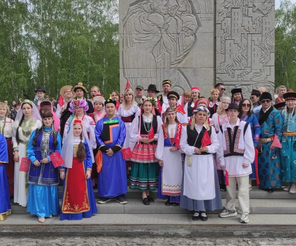 9 мая многонациональная колонна под лозунгом «ВСЕ НАРОДЫ ШЛИ К ВЕЛИКОЙ ПОБЕДЕ» приняла участие в торжественном митинге на Монументе Славы в Новосибирске.