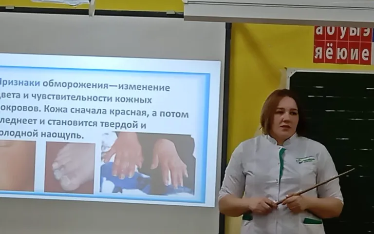 Обучающиеся узнали про стадии обморожения, разобрали ПМП при обморожениях и переохлаждениях.